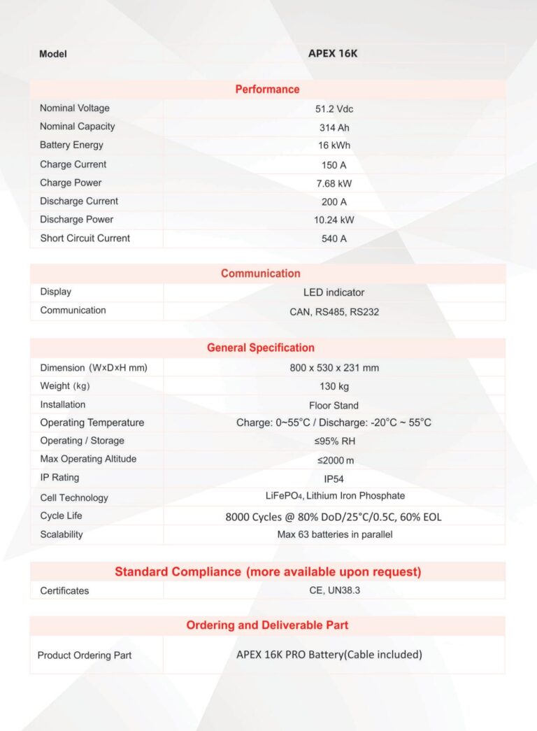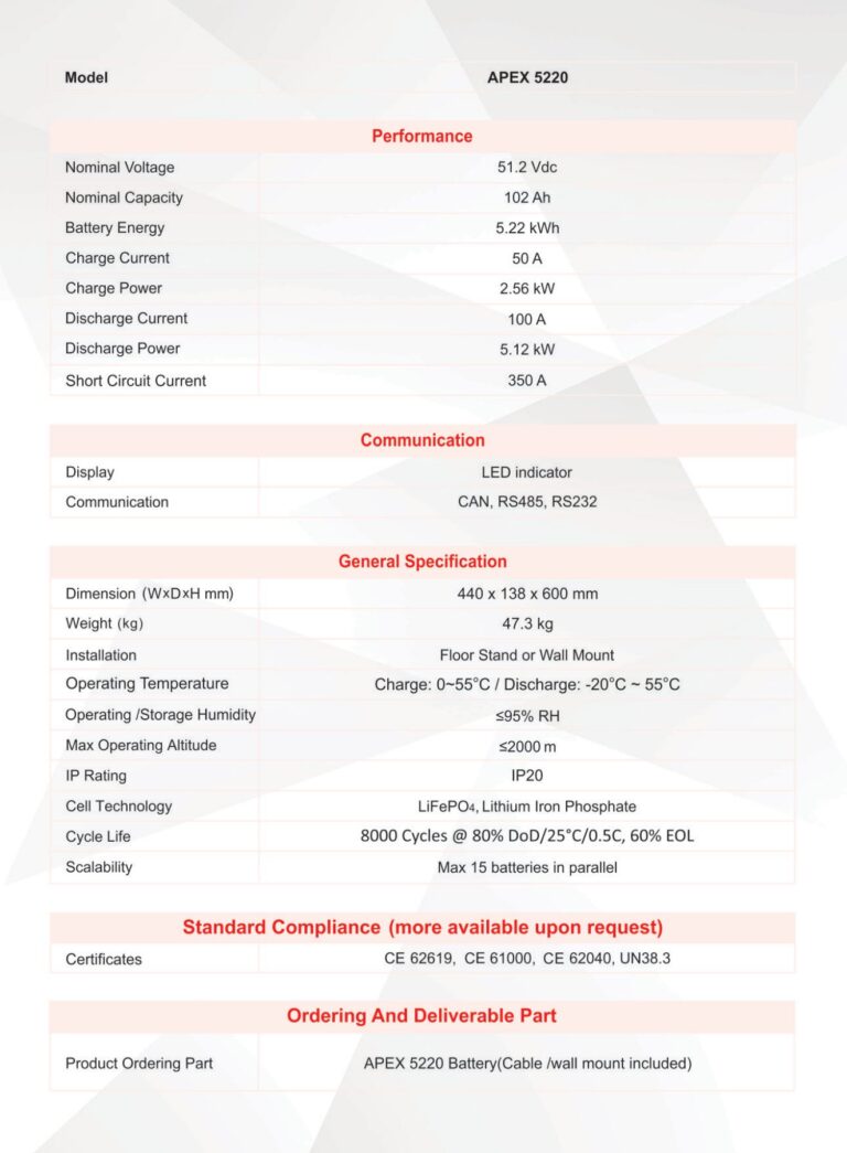 Apex 2.6kW Lithium Battery – 25.6V Battery